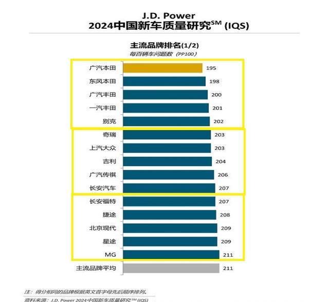 广汽本田、东风本田,一举拿下第一、第二名,PP100数值都不到200,这质量,杠杠的!