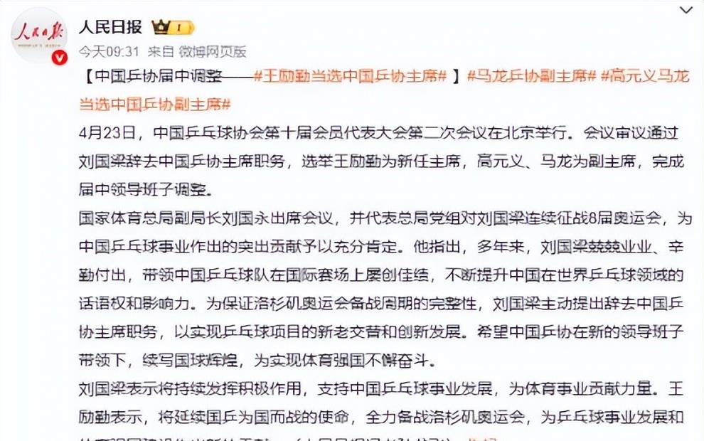 网友们一听到这个消息都吓了一跳,纷纷调侃:“刘国梁真成了任期最短的乒协主席!”