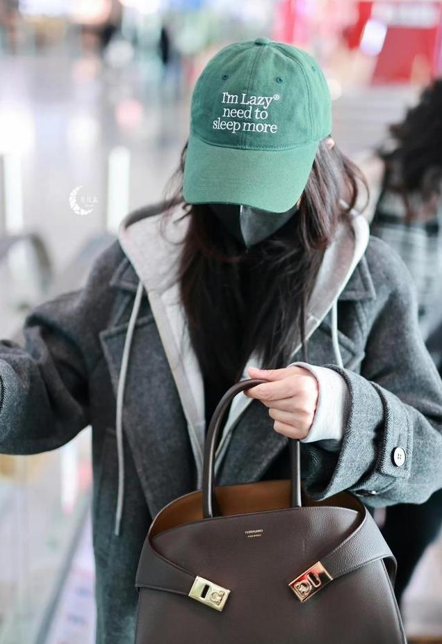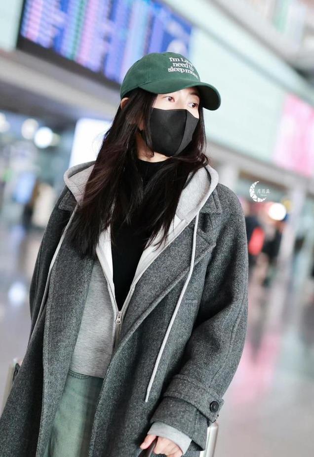 高圆圆选择用浅灰色的卫衣叠穿深灰色的大衣,虽然衣服的颜色是同色系,但由于深浅不同,所以也会觉得非常有层次感,然后再把卫衣的领口敞开,露出最里面的黑色打底衫,更是加强了层次。