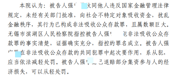 滨湖区法院认定强某勤自2016年起伙同其子刘某强等人参与吸收公众存款580余万元,以从犯身份判处其有期徒刑十个月,并责令退赔相应经济损失。但这一判决在事实认定、法律适用及审理程序上均存在显著争议:
