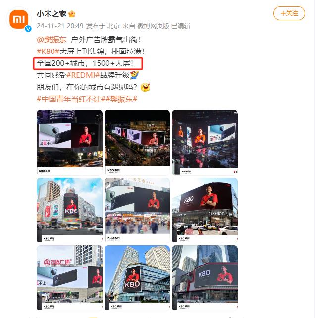 随后品牌商也十分给力,发布了与樊振东有关的一系列宣传,甚至还在全国两百多个城市,包下了1500多块的大屏,将樊振东的代言海报全方位展示出来,那牌面和顶流明星别无二致。