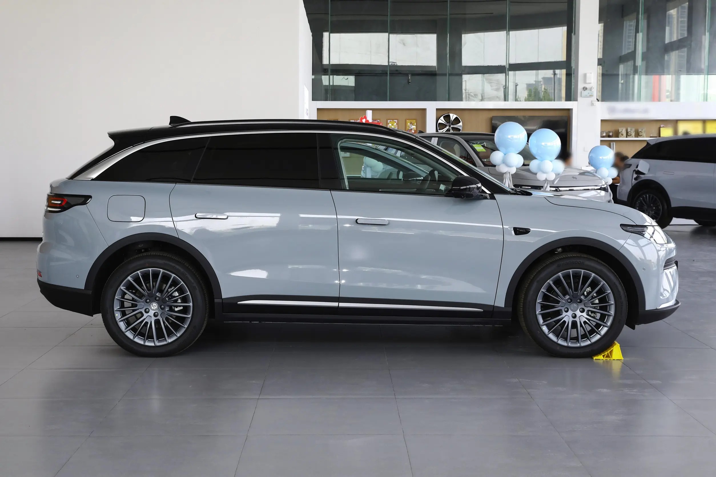 车身侧面舒展大方,黑色的悬浮式车顶、无框车门以及隐藏式电动门把手都是时下流行的元素,外后视镜具有记忆、倒车自动下翻、锁车自动折叠等功能,前排侧窗是多层隔音玻璃,后排侧窗的隐私玻璃则更好的保护了乘客的私密,而20英寸多幅轮毂、黑色轮眉、车顶末端的扰流板等都增加了运动气息,尾部厚重,贯穿式尾灯拉宽了视觉效果,红色的LED光带亮起后挺漂亮的。