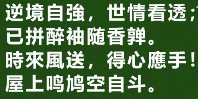 顺境中更需定力。“屋上鸣鸠空自斗” 的隐喻,道出了超脱的智慧:当自身顺达时,冷眼旁观外界的无谓纷争,明白那些你争我夺不过是鸣鸠般的空耗。不被功利裹挟,保持内心的平静,才是顺境里最珍贵的格局。