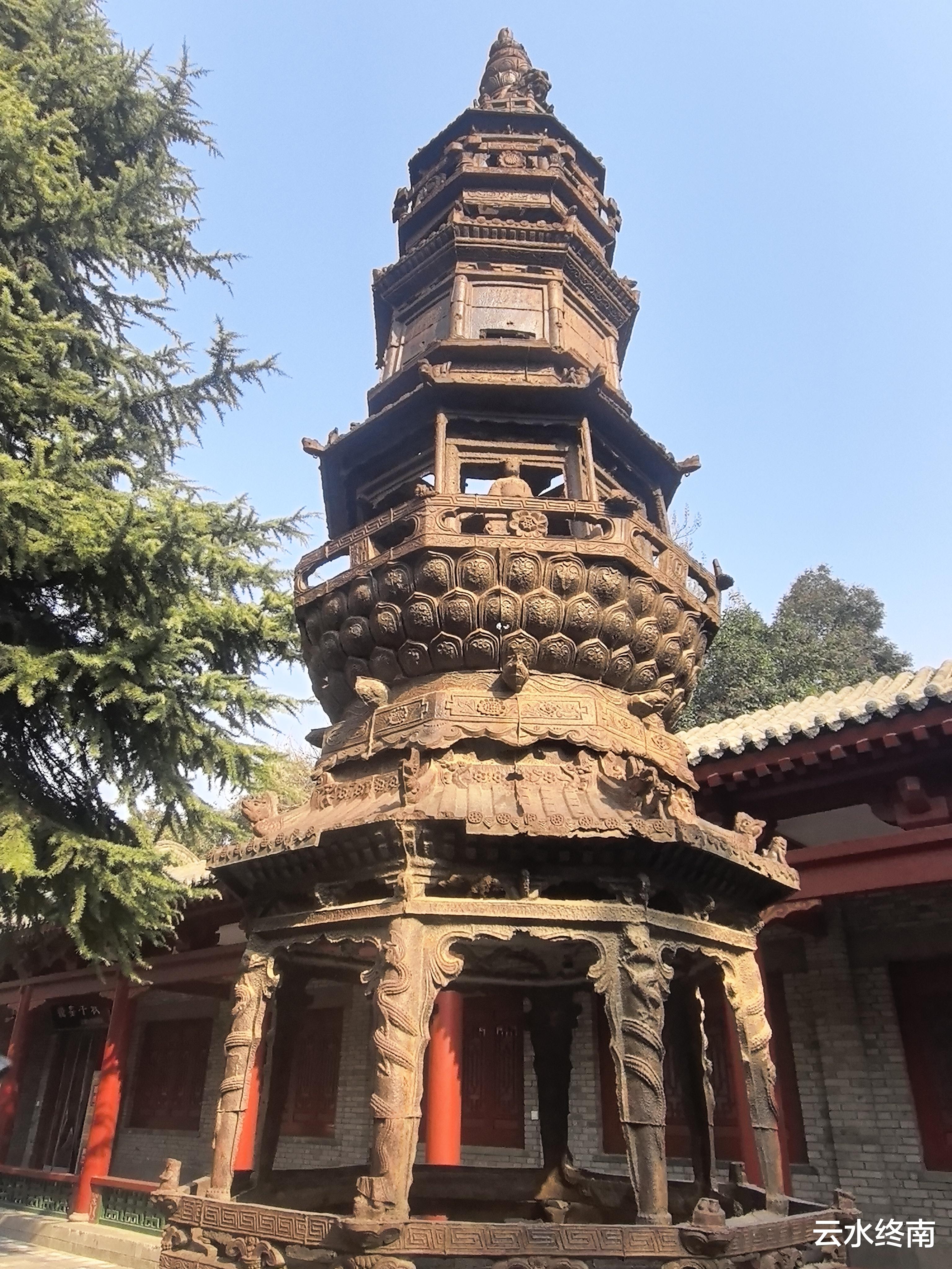 这两座铁醮炉是明崇祯三年铸造的铁,有六七米高,八面十一层,猛一看像是尊铁塔,原来在兴平城隍庙里,城隍庙拆毁后移放此处。