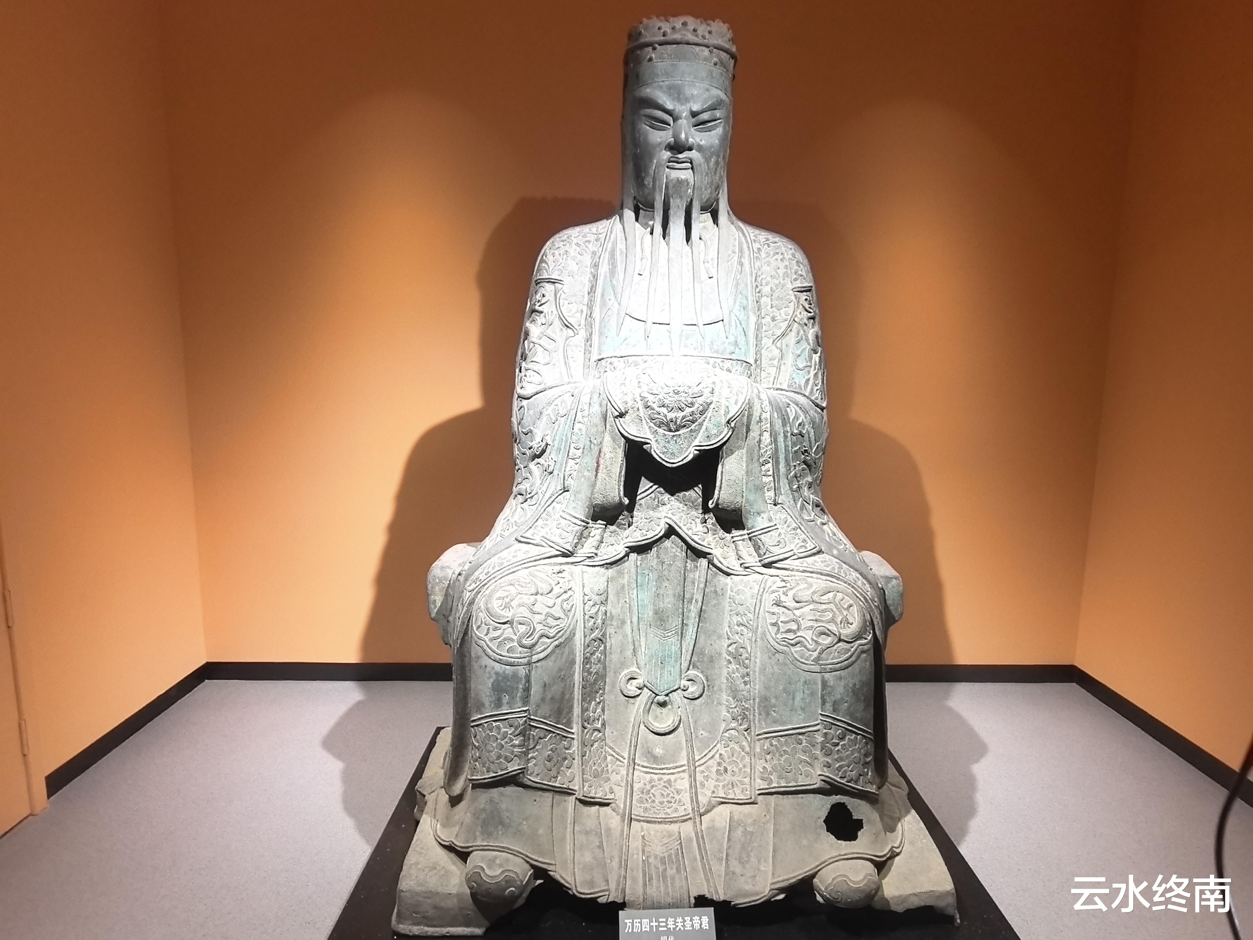 铜关羽为国家一级文物,高达227厘米,坐姿,面庞方阔,显得庄重威严。浓眉高挑,凤眼高鼻,唇线棱角分明。