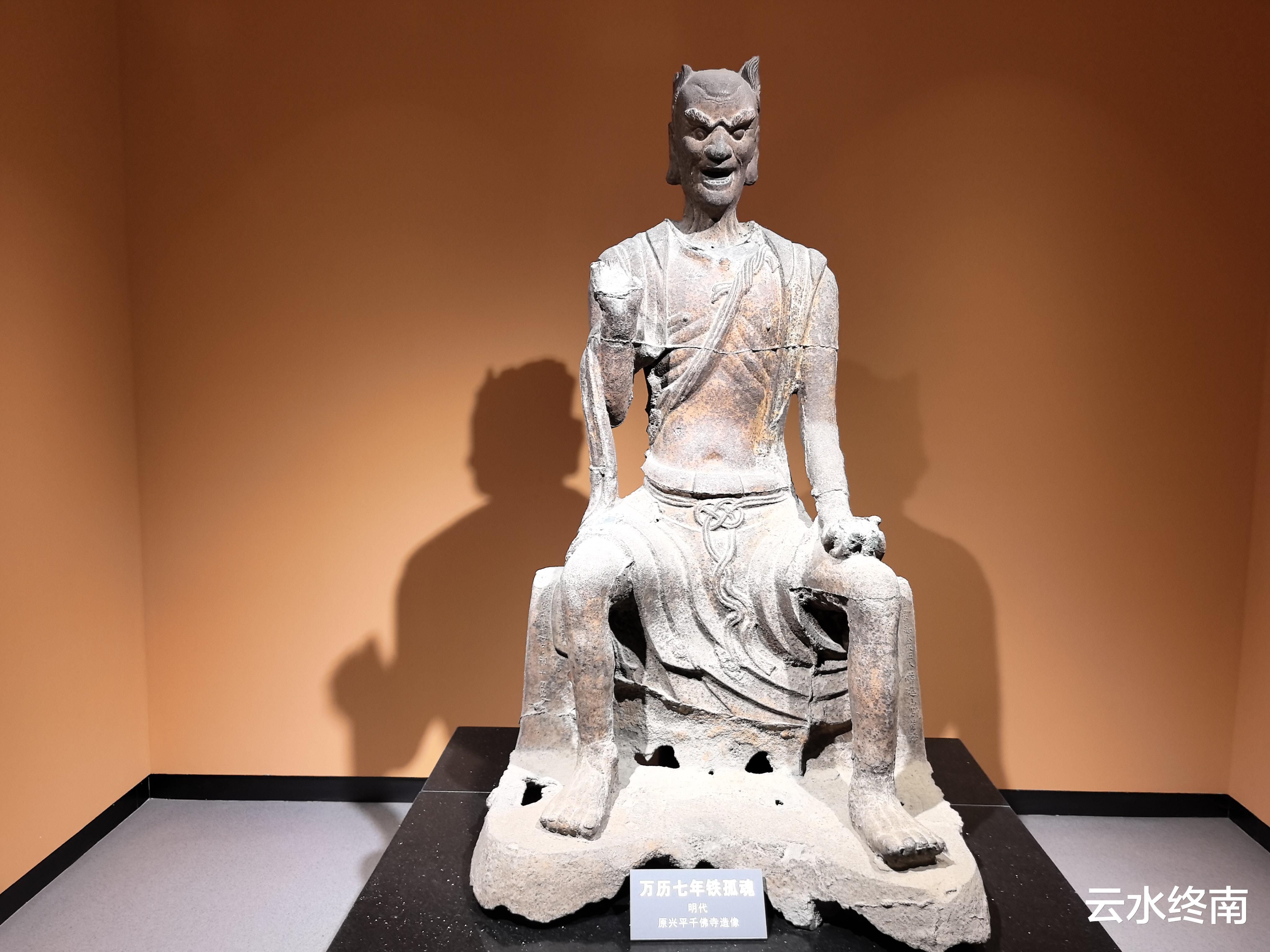 旁边的铁骨魂其实也应该算上兴平一宝,像高147厘米,浓眉大眼,张口瞠目,身披少许衣服,两腿分开,右手曲肘上举,手指残缺。通体瘦削,全身肋骨清晰可见。