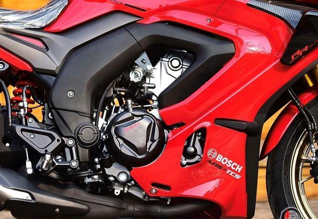再看看配色,它提供了赤焰红、银月白、曜石黑、电光银四款颜色供消费者选择。而且漆面上还有金属颗粒,这可不象简单的装饰,它大大提升了整车的质感。当你骑着这样一辆色彩亮丽、质感十足的摩托车在路上行驶的时候,肯定回头率超高。