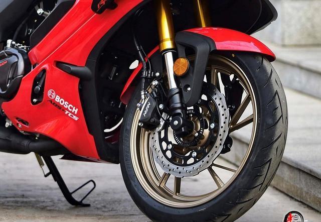 再看看它的硬件配置,那可真是诚意满满。前悬架采用KYB倒置前叉,KYB这个品牌在摩托车减震领域可是很有名气的,它的倒置前叉能保证出色的运动性能。后减震是中置后减震,还支持预载调节功能,这个功能可以根据骑手的体重和骑行习惯进行调整,能够有效吸收城市路面的颠簸感,提供了出色的支撑性和舒适性。刹车系统采用前后盘刹 + NISSIN日信卡钳,前290mm单盘双活塞卡钳,后240mm单盘单活塞卡钳,高配版本则提供了前后双活塞卡钳。刹车系统就像是摩托车的安全卫士,这样的配置能让骑手在骑行过程中更加放心。而且它标配了博世双通道ABS制动系统和TCS牵引力控制系统,这两个系统在紧急情况下能发挥很大的作用,ABS可以防止车轮抱死,TCS可以防止车轮打滑。高配版还配备了米其林半热熔轮胎,这种轮胎的抓地力非常出色,能让骑手在骑行时更加得心应手。