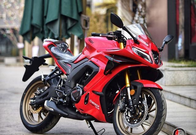 说到动力,杰迪K333搭载的是一台直列双缸水冷四冲程发动机,实际排量为322cc。这个排量在仿赛摩托车里是比较常见的。它采用DOHC四气门结构设计,匹配博世电喷系统。这个博世电喷系统可不得了,它能提升进气效率,让燃油燃烧得更充分,从而获得出色的燃油经济性。它的最大马力能达到38.1匹,最大功率为28kW/10500rpm,最大扭矩为27.5Nm/9000rpm。这些数据看起来可能有点枯燥,但是和雅马哈R3比起来就很有意义了。雅马哈R3在仿赛领域也是小有名气的,杰迪K333的账面参数和它十分接近。而且杰迪K333的百公里加速能达到5.6秒,最高时速可达170km/h,这样的性能表现足以证明它的实力。它还标配了滑动离合,这个滑动离合的作用可大了,它能减少换挡时的顿挫感,让驾驶体验更加平顺。