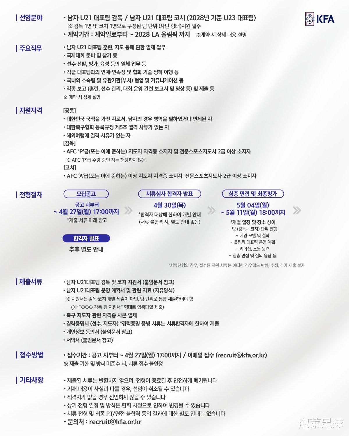 1、全球海选国奥新帅及助教,韩国足协又玩“萝卜招聘”?