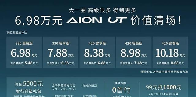 2月28号,埃安家的AION UT鹦鹉龙新车开卖了,一共有5种车型可以选,价格嘛,从6.98万到10.18万不等。这车是个小型纯电两厢轿车,算是埃安的第三款主打全球市场的车型,专门盯着10万块左右的市场。而且,这车全系都装了倒车时能自动刹车的AEB系统,挺安全的。厂家说了,他们希望AION UT每个月能卖个1到1.5万台。
