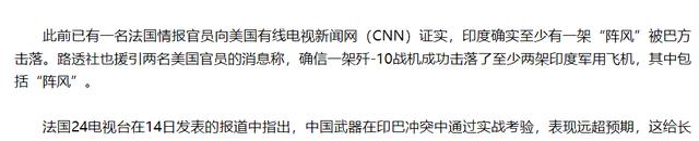 其次,关于印度甩锅法国阵风战机问题,实际上,印度官方从始至终都没有承认过阵风战机被击落,自然是不会自己打自己脸。