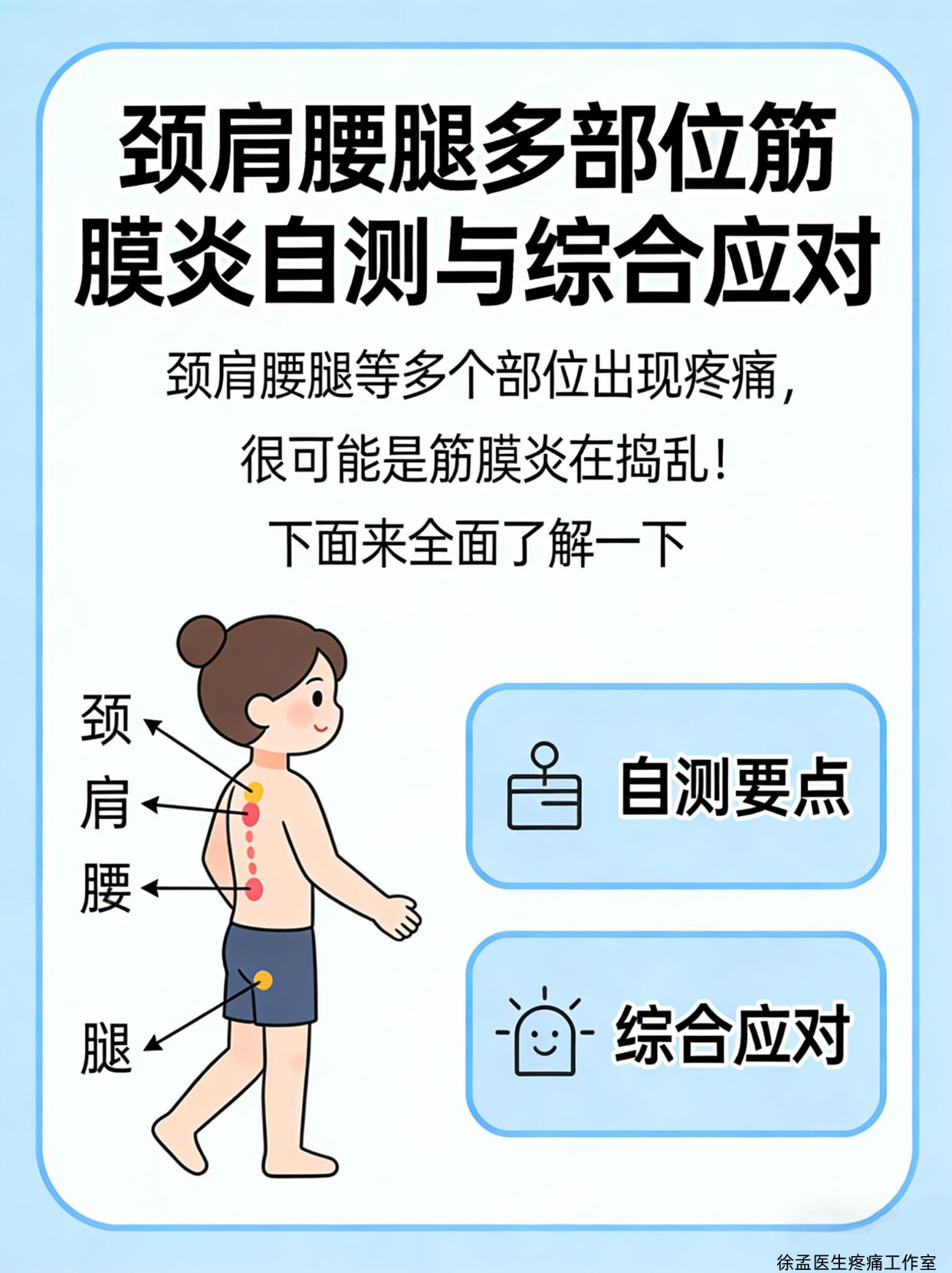 颈肩腰腿等多个部位出现疼痛,很可能是筋膜炎在捣乱!下面来全面了解一下。