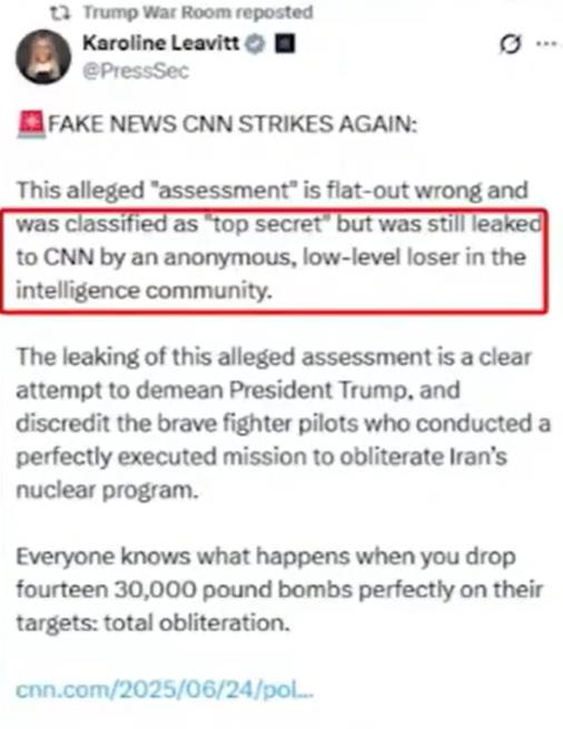 但问题在于,CNN获得了美国国防情报局(DIA)的绝密情报——此次对伊朗福尔多核设施的打击基本无重大影响:60%浓度(用于提炼90%武器级浓缩铀)的核燃料早已转移,未被击中;耗资数亿美元(动用B-52轰炸机、14枚导弹等)的行动,战略上仅保守估计拖延伊朗核计划数月。
