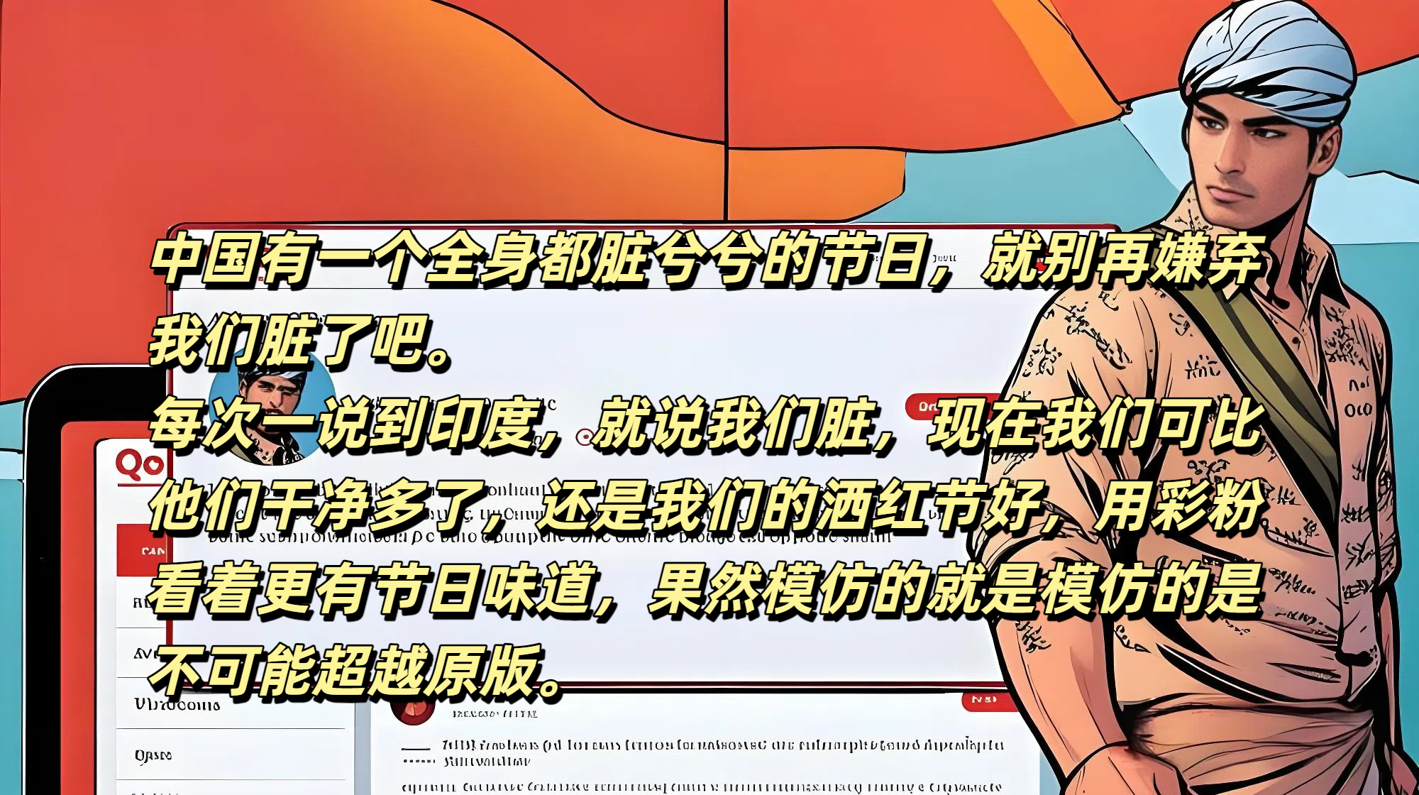 一位同样来自印度的网友说道:“中国有一个全身都脏兮兮的节日,就别再嫌弃我们脏了吧。