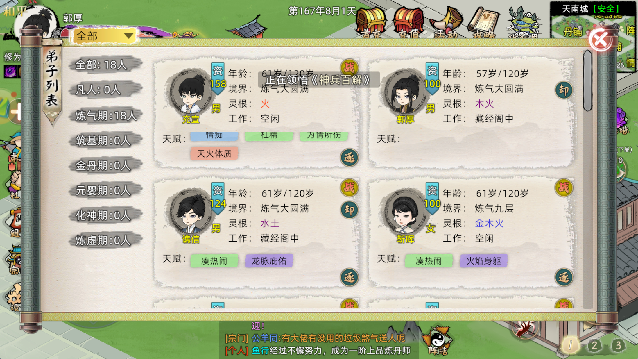 开局啥也没有,就一座岛,几个姓你姓氏的凡人子弟,加上一两位可能资质平平的初始长老。你得像个真正的家长一样操心一切:安排族人去探索危机四伏的海域地图,寻找资源点和可能的天材地宝;指挥他们建造洞府、开辟灵田;还得盯着家族库房里那点可怜的灵石和粮食,精打细算。
