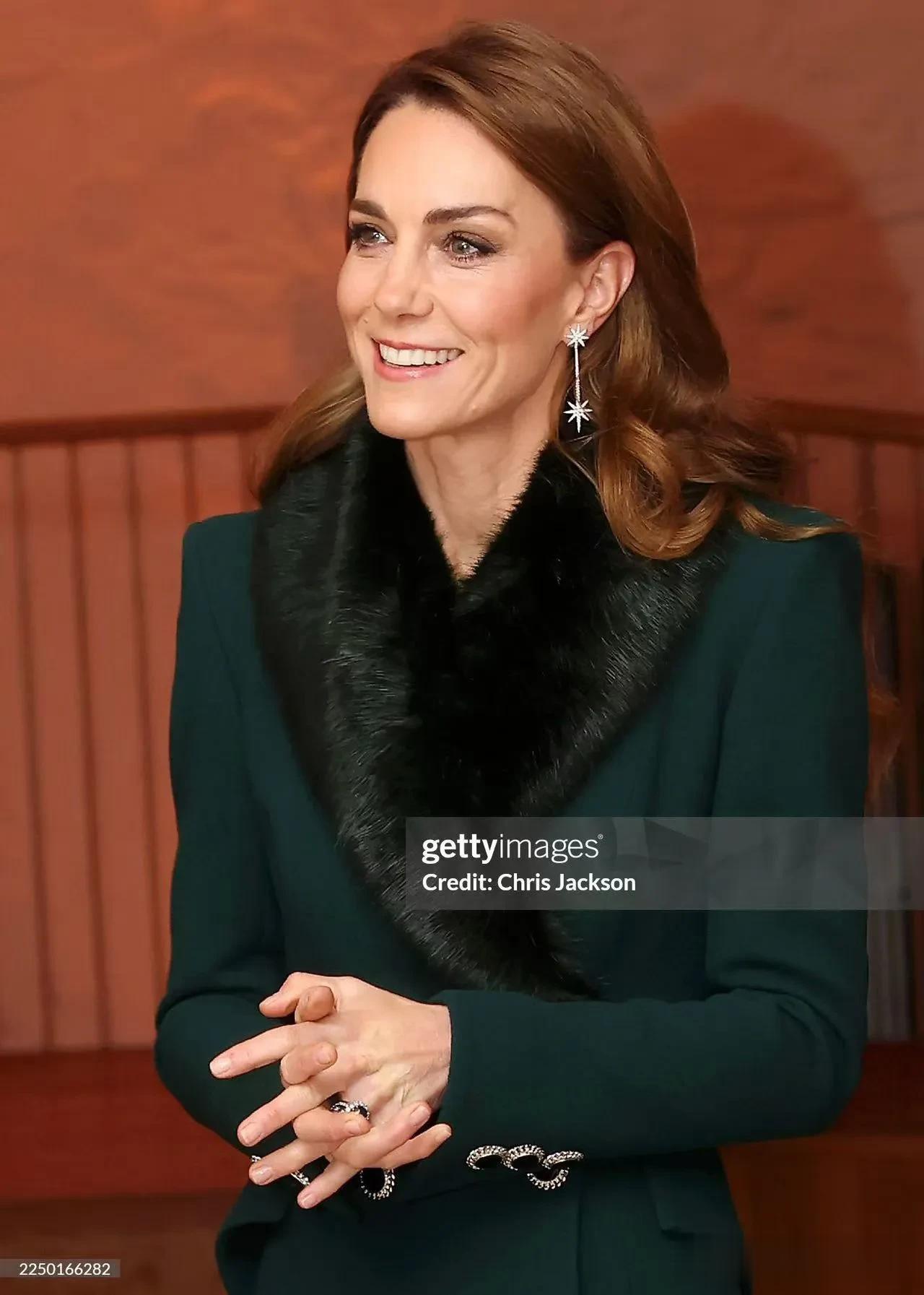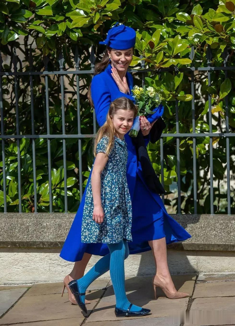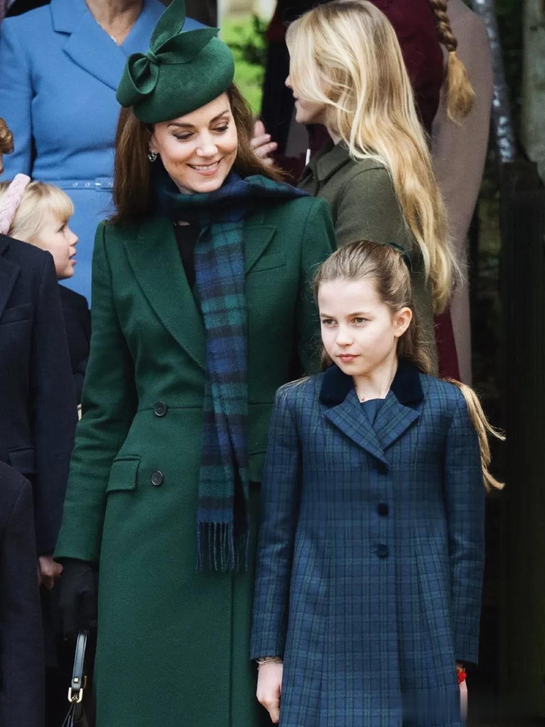 当晚凯特和女儿夏洛特的穿搭也是那样的端庄高雅,女儿选择了深蓝色的翻领连衣裙,妈妈则是绿色的长款大衣,两母女都是低调优雅的装扮,但又都是那样难掩耀眼与明媚。