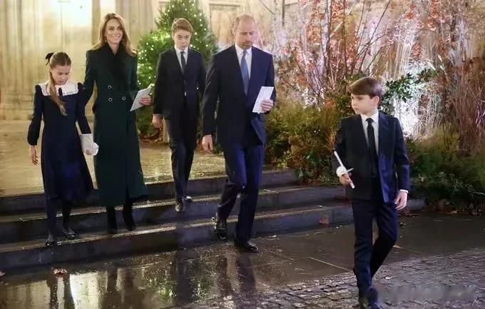 一家五口并肩走进来时,凯特也是和女儿挨在一起,其他三位男士嘛就在另一边吧!
