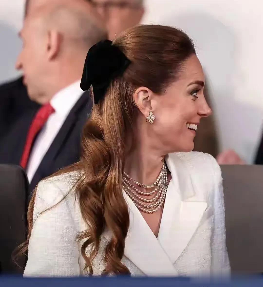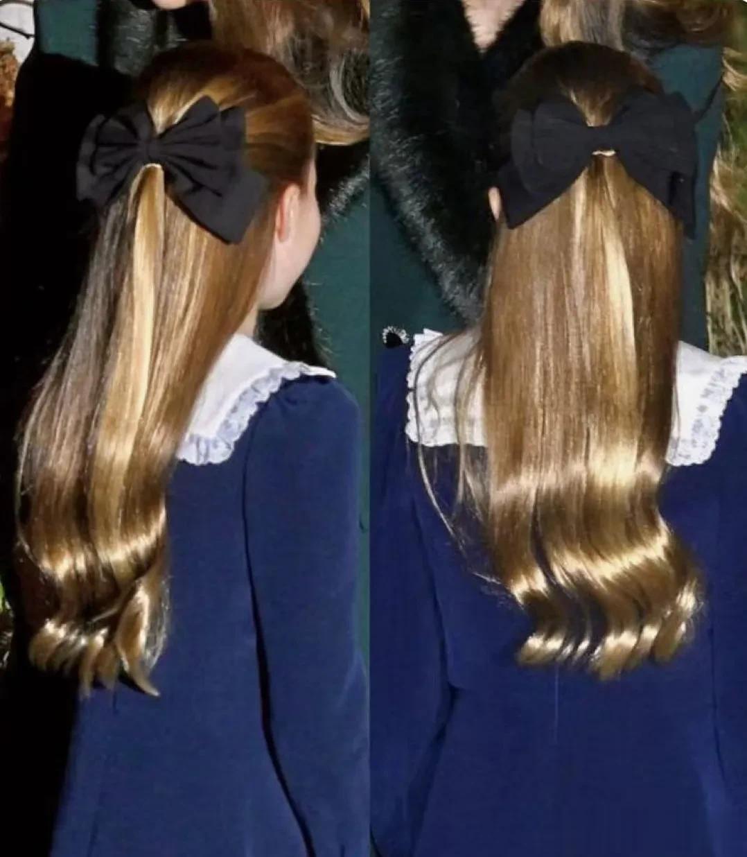 夏洛特公主一头金棕色的美丽长发给人们留下了深刻印象,那个黑色的蝴蝶结发卡和妈妈以前戴过的高度类似!
