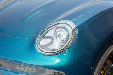 外观上,欧拉好猫(品技术)的“复古未来主义”设计,第一次见到实车就被圈粉了。4242mm的车身长度恰到好处,没有小型车的局促感,反而带着上世纪中叶经典车的圆润轮廓,引擎盖的弧度藏着一丝力量感。那双“猫眼大灯”,40颗LED光源层层环绕,点亮的时候就像猫咪眨眼一样灵动,晚上开车的时候实测照射距离能到104米,下雨天通勤视野也很清晰,这点对于经常晚归的朋友来说很实用。