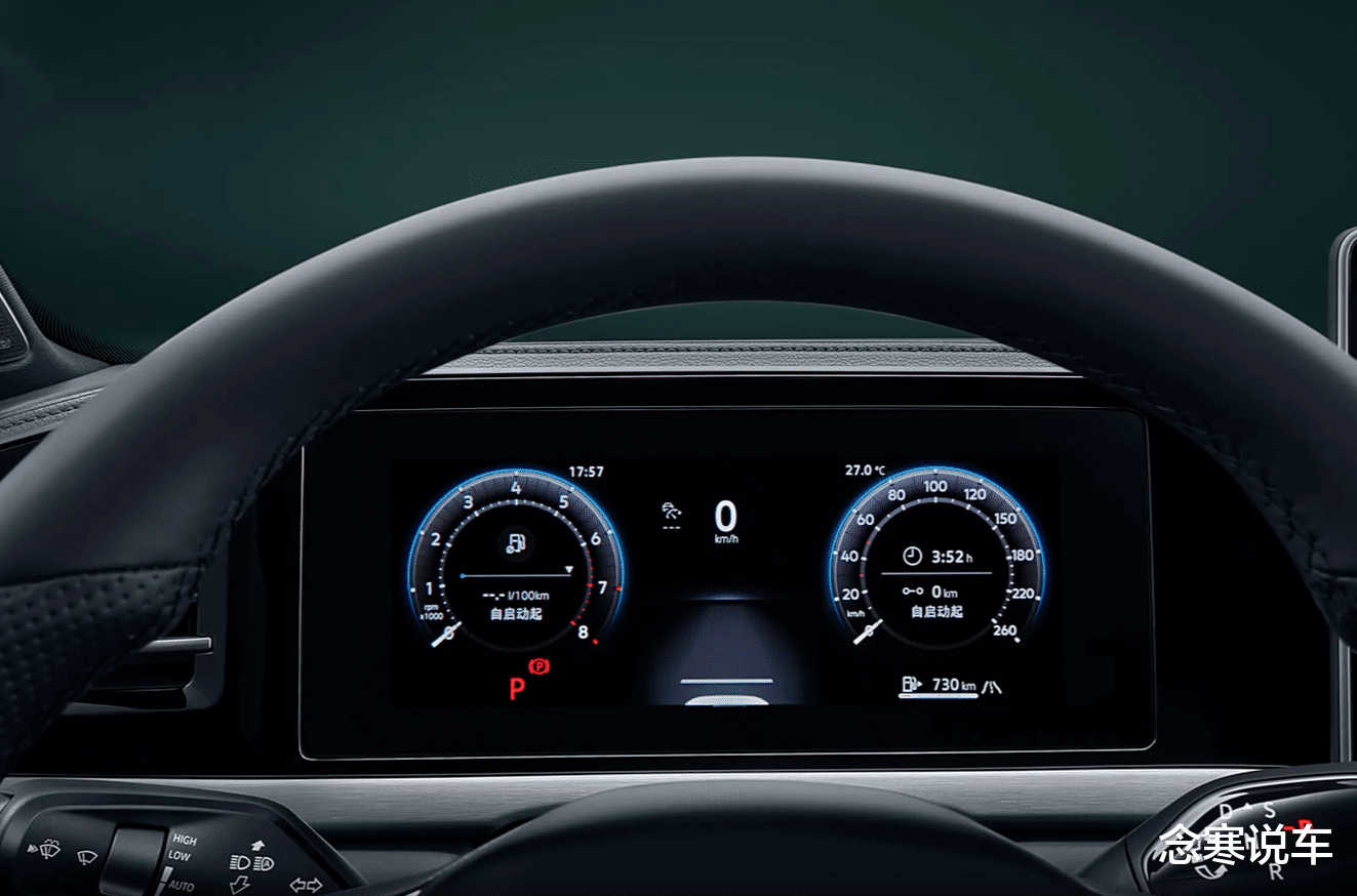 旁边是10.3英寸的全液晶仪表盘,科技感这块儿算是跟上时代了。方向盘是平底的,换挡也改成了小巧的怀挡设计,给中控台省出了不少储物空间。