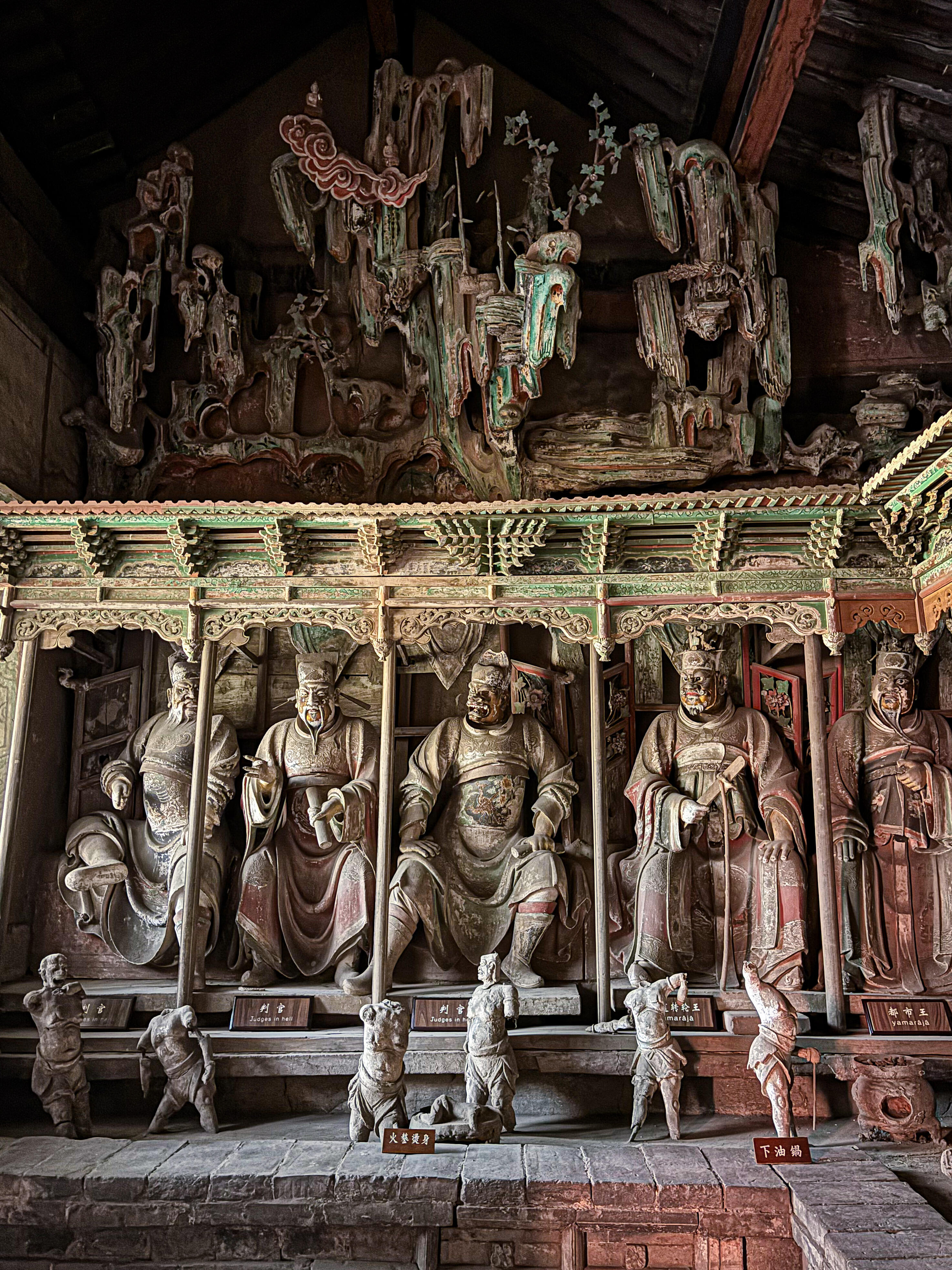 刚进双林寺大门,最先扑面而来的不是香火味,是一种“时光慢下来”的安静。没有古城里叫卖平遥牛肉的吆喝,没有导游举着小旗子的讲解声,只有风吹过殿角风铃的“叮当”声,和自己的脚步声在院子里回荡。这座有1400多年历史的寺庙,现存的建筑多是明清时期重修的,可殿里的彩塑,却把宋、元、明、清的风格都揉在了一起。有人说双林寺“名气配不上实力”,因为单论彩塑数量和质量,它完全能和晋祠、华严寺比肩,可就因为“不在古城核心区”,连很多专门来山西看古建的人都会把它漏掉;可也有人说“没火才好”,去年我去的时候,能贴着栏杆看千手观音的每一根手指,能凑到韦陀像前看他铠甲上的纹路,这种“独享”的体验,在网红景区里根本不可能有。你站在天王殿门口,看着四大天王像足足有三米高,手里的琵琶、宝剑、龙蛇、宝伞都雕得栩栩如生,突然明白,双林寺的“静”不是“冷清”,是给彩塑留足了“讲故事的空间”。