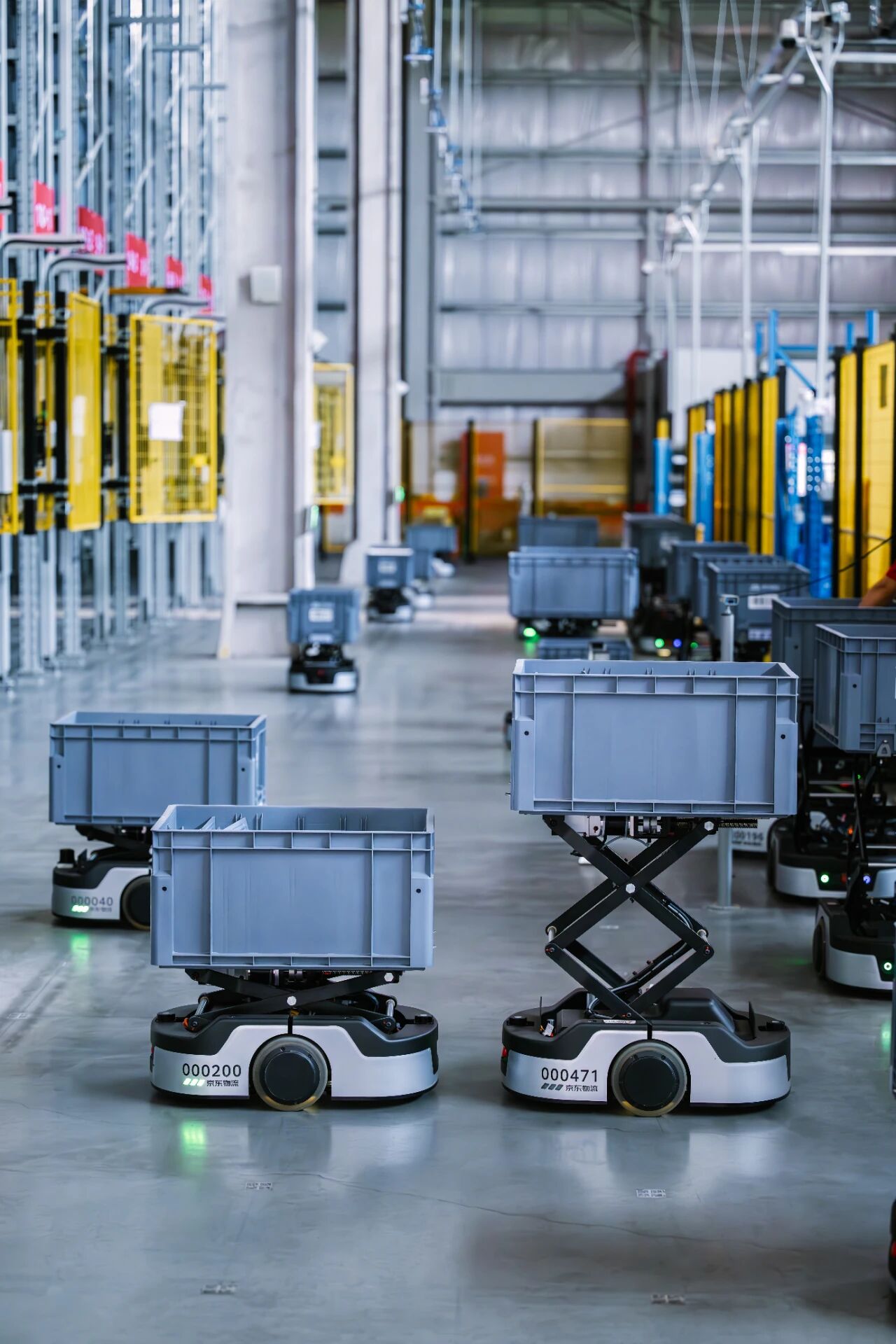 作为京东物流在英国布局的自动化标杆仓库,这一智狼仓占地面积超3000平方米,内部部署近200台京东物流智狼机器人。得益于这些智能设备的高效运转,该仓库拣货及出库效率实现约4倍的大幅提升。此外,仓库通过对货架进行增高、加密改造,大幅拓展了存储空间,单位面积的货物存储量也显著提升。