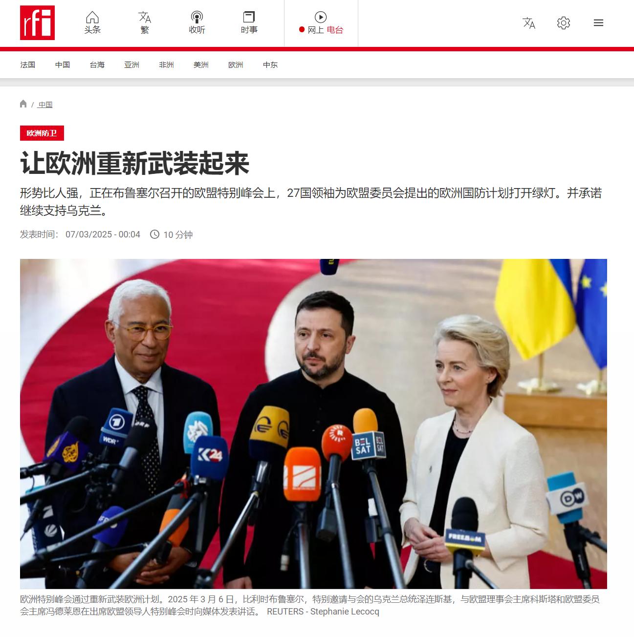 3月6日,欧盟在布鲁塞尔召开了一场特别峰会,27个成员国齐心协力,决议在未来几年内筹集高达8000亿欧元的防务支出计划,旨在重新武装欧洲,抵御俄罗斯的“入侵”。与此同时,欧洲承诺将在2025年向乌克兰提供价值306亿欧元的援助,这其中包括先进的