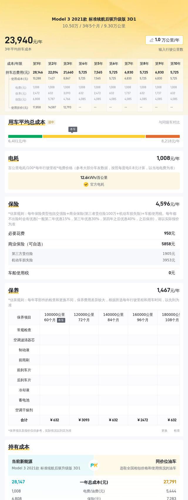 然而,价格的吸引力并不仅仅来自于初购成本,使用成本同样是消费者关注的重点。以一年行驶2万公里为例,Model 3的电费仅约为2500元,相比之下,燃油车的使用成本则高达1.4万元,且在三年的保养费用方面,Model 3甚至可以做到只需15000元左右。这一数据不仅可以令车主减轻购车后的经济负担,也在一定程度上增强了消费者的购车决策信心。