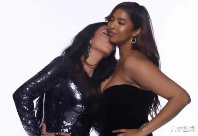 其中一张照片,是瓦妮莎和大女儿娜塔莉坐在一起的同框合影,母女俩偎依在一起,就连笑容都出奇地一致,如同一对姐妹花。