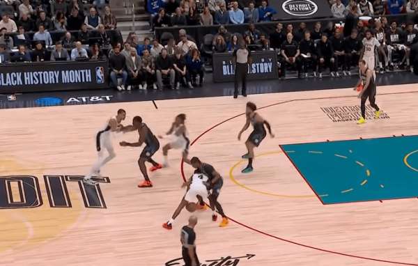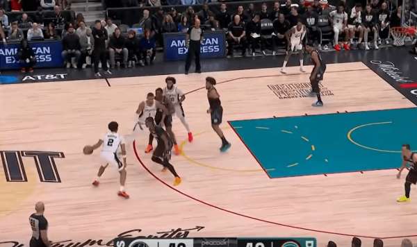 瓦塞尔为文班设置Rip Screen后顺势落位至弧顶获得出手空档,