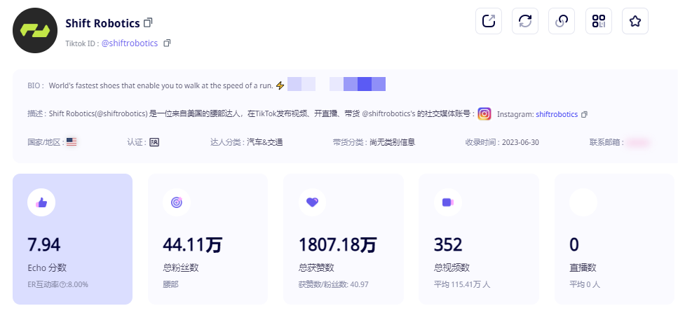 目前,品牌官方账号@shiftrobotics已经获得了44.11万粉丝,共计发布视频352条,总视频平均播放量为115.41万,从账号运营的角度来讲无疑是相当成功的。