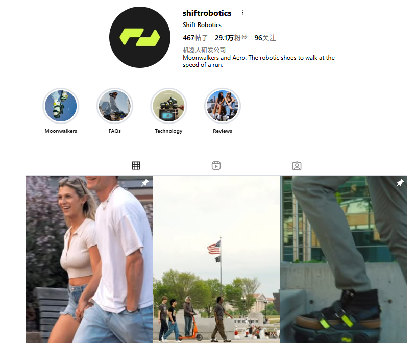 在Instagram上,Shift Robotics品牌的操作更偏向“品牌形象+社区运营”,通过持续发布产品功能亮点和用户UGC内容,来维护品牌调性。