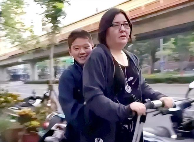 那个在媒体镜头前永远黑脸、戴着墨镜的大姐大,在儿子身边,笑得一脸慈祥。