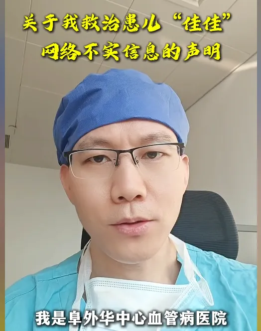 从绿色通道全力救治,换来疑似网暴的困扰最近,阜外华中心血管病医院儿童心脏外科副主任医师、儿童心脏中心副主任张岩伟在个人社交平台上,发布了一则题为“关于我救治患儿‘佳佳’网络不实信息的声明”的视频,讲述了这样一件事——