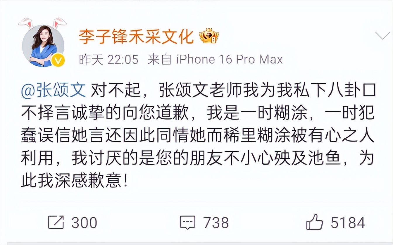 李子锋深夜发文向张颂文道歉:我是一时糊涂被有心之人利用.搜狐娱乐.2025-01-08