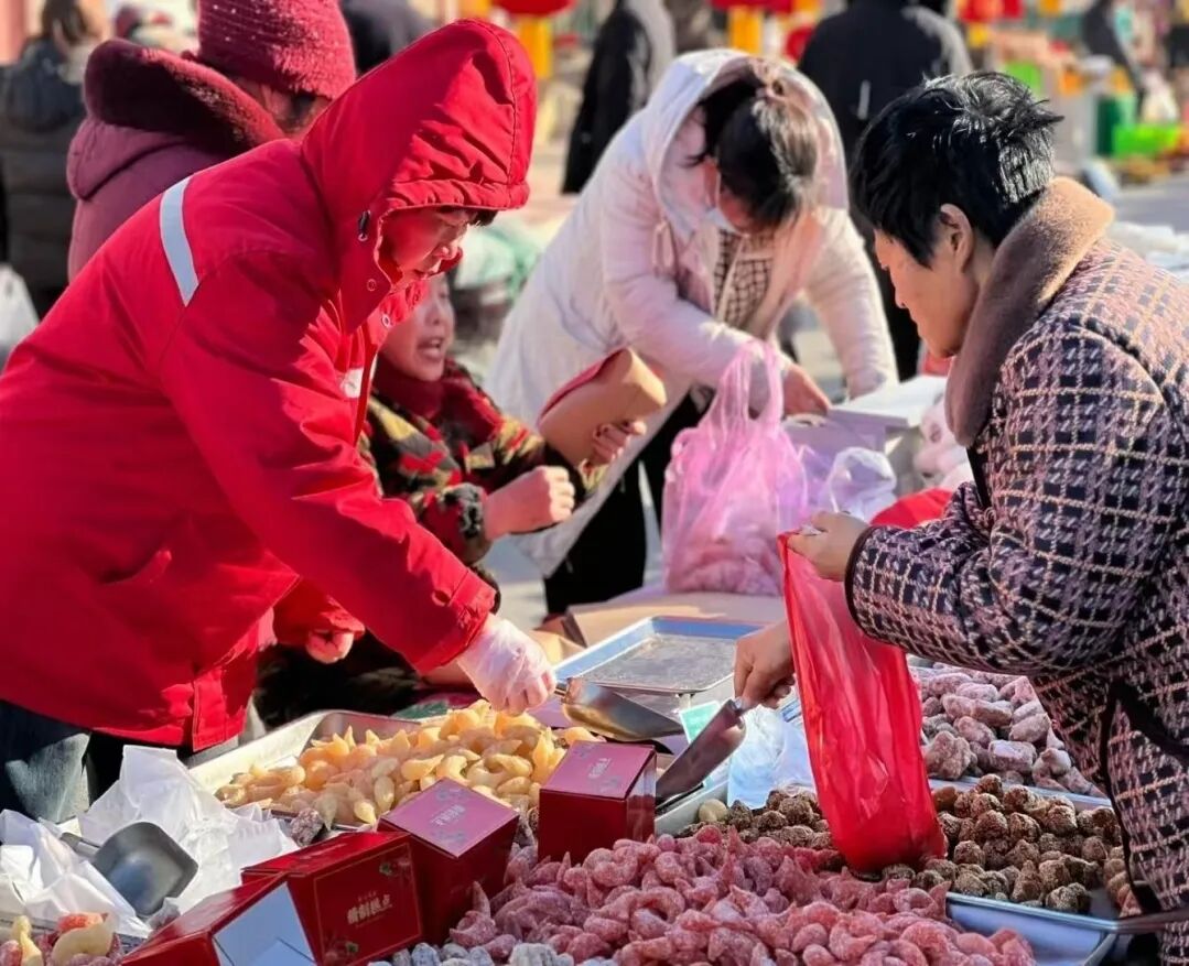 年集上的美食香气,更是勾着每个人的脚步。冰糖葫芦、糖糕、馓子、炸丸子、腊肉、灌肠,还有现做的糖画,每一样都是家乡过年的特色美食。大人们忙着挑选新鲜的鸡鸭鱼肉、瓜果蔬菜,孩子们则围着小吃摊打转,这也是年集最动人的烟火气。