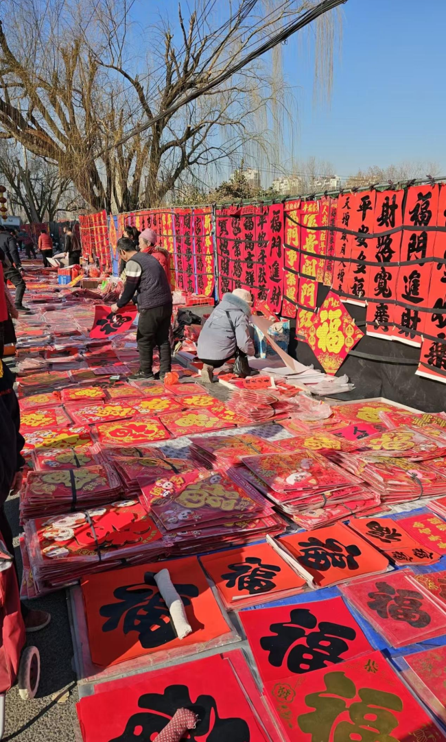 赶年集,是家乡过年的第一波热闹。腊月廿十过后,家乡的集市就彻底热闹起来,家家户户都会趁着年集备齐年货。街巷两旁挂满了红彤彤的灯笼、春联和福字,最显眼的还要数年画摊,各类年画琳琅满目,门神、福娃、骏马奔腾等样式应有尽有,色彩艳丽、寓意吉祥,贴在家中,既能添年味儿,也藏着对新年的美好期许。