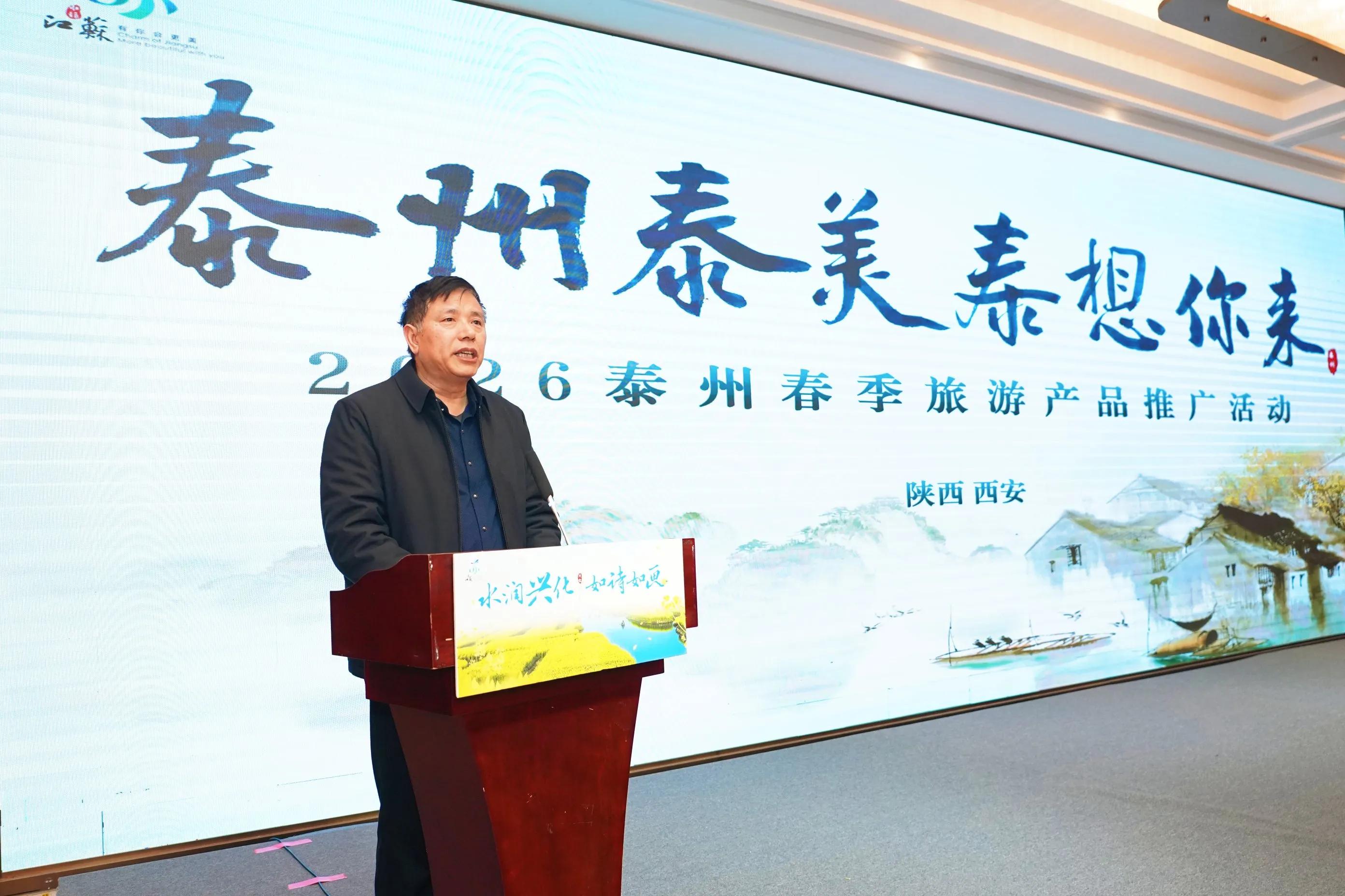 活动伊始,泰州市文化广电和旅游局四级调研员 旅游推广处处长姚生根先生率先致辞,从美在春水 美在文化到美在美食等几个方面系统阐述了泰州春日之美,同时表示西安是十三朝古都,丝路起点,气势恢宏;泰州是江淮水城,温润闲适,韵味悠长。一东一西,一刚一柔,风情互补、客源互通,并真诚邀请各位西安游客走进泰州、遇见泰州、爱上泰州。