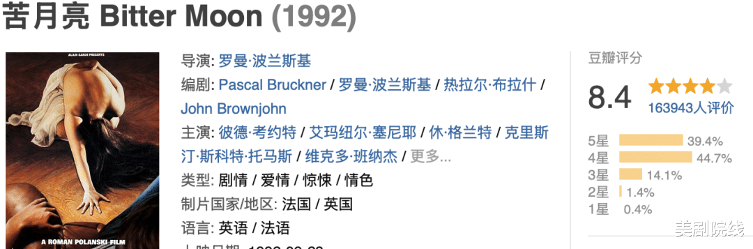目前豆瓣8.4分,休·格兰特的成名之作,同时也是一部情欲神片。