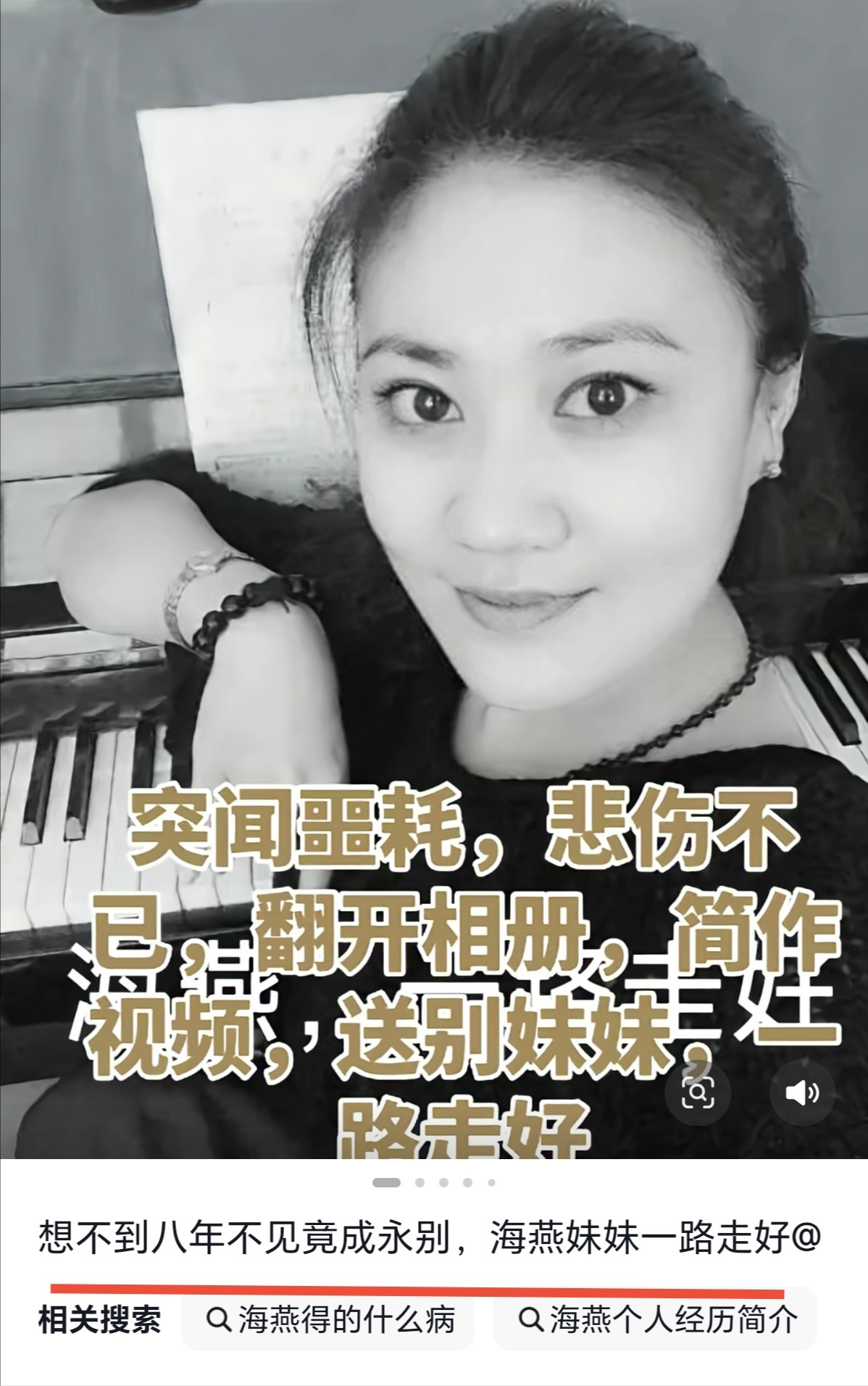 12月28日的深夜,社交平台上,一个叫“姜姜6”的博主发了条视频,配文:“想不到八年不见竟成永别,海燕妹妹一路走好!”