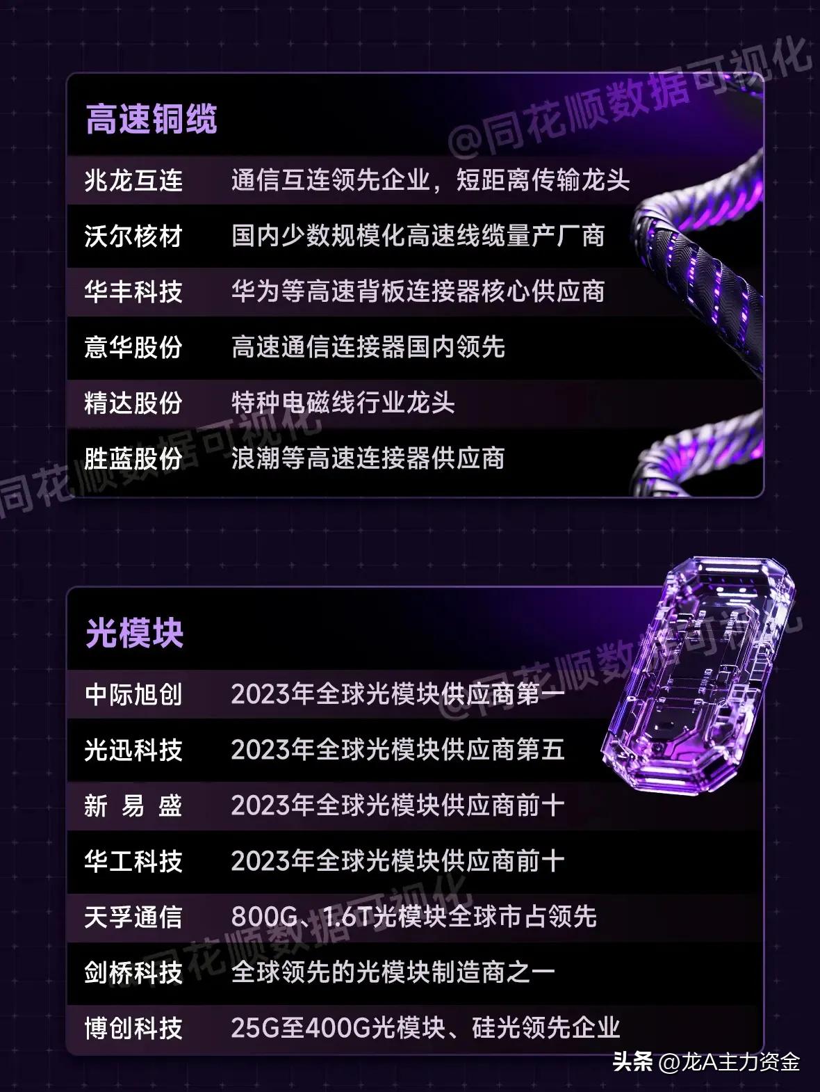 兆龙互连:产品涵盖 DAC 解决方案、MPO 主干光缆、CAT6A 系统等;广泛应用于云计算、数据中心、5G 通信等领域。