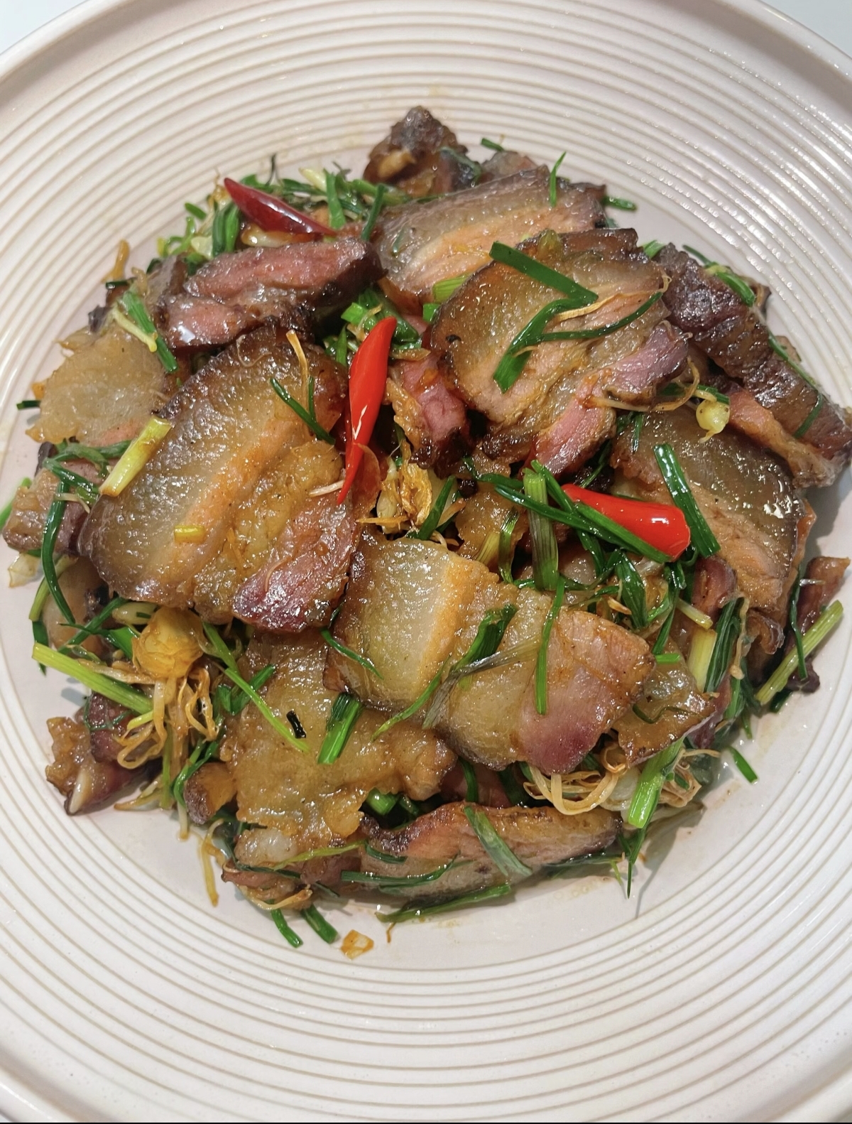 在这快节奏的现代生活中,我们往往容易忽略季节的流转。但这道野葱炒烟熏肉,用最朴素的方式提醒着我们:不时不食,顺应天时。野葱是自然的馈赠,腊肉是人的智慧,两者相遇,成就了舌尖上的春日狂欢。每一口咀嚼,都是对土地的致敬,也是对生活的热爱。愿我们在品尝这份美味时,都能找回那份久违的宁静与满足,在一蔬一饭间,感受生活最本真的滋味。