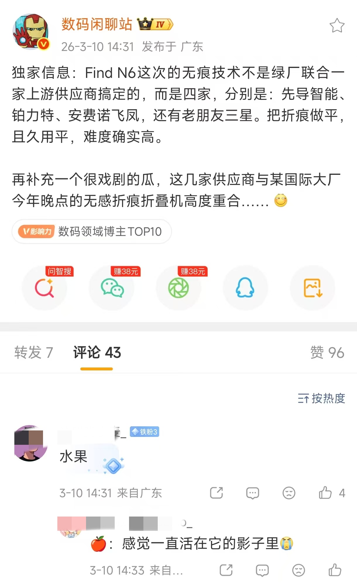 所以这次OPPO Find N6的真机折痕究竟能浅到什么程度呢?那些被折痕折磨过的朋友,敬请期待3.17发布会!😄