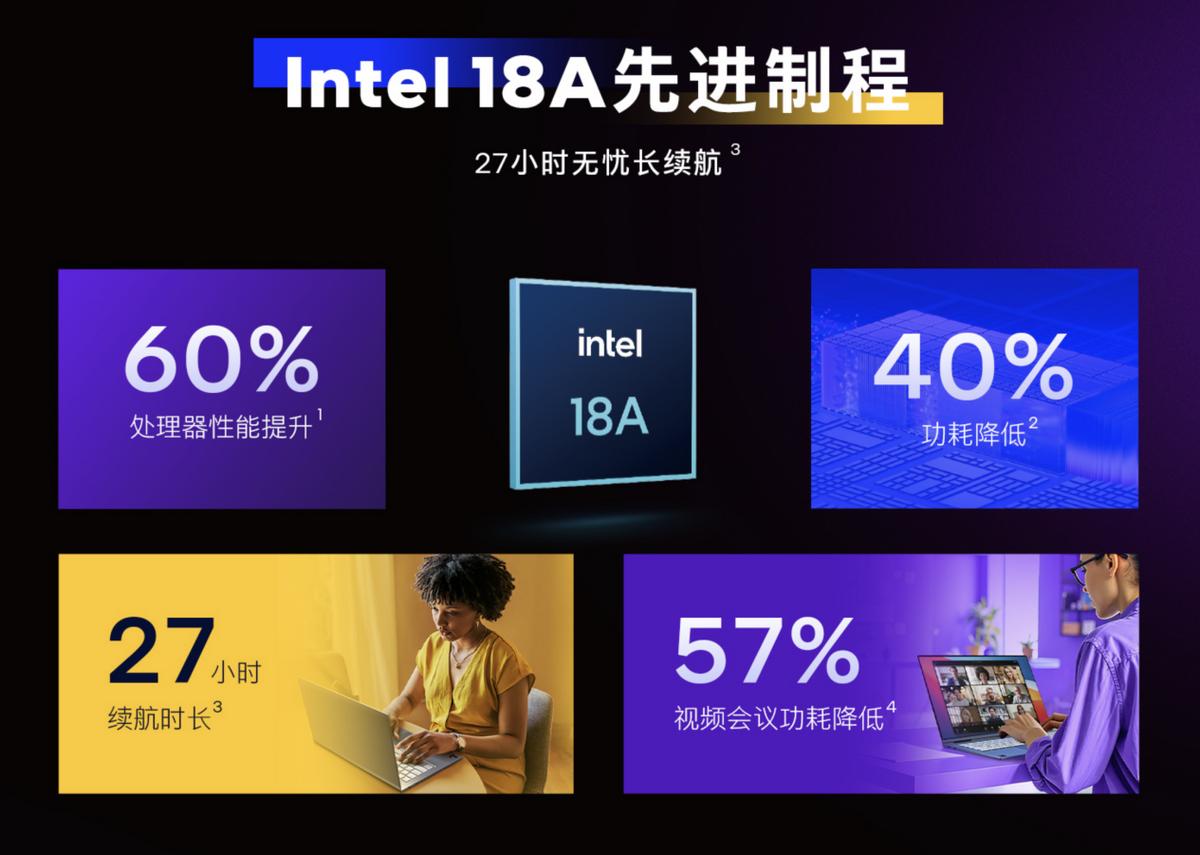作为首批采用 Intel 18A 制程节点的平台之一,ROG 幻16 双屏所搭载的英特尔酷睿 Ultra 9 处理器 386H,在能效表现上迈出了关键一步。得益于新的制程方案,它能够在更低功耗下完成更多计算任务,相比 Intel 3 制程实现了约 15% 的每瓦性能提升;与此同时,制程进步也带来了更高的芯片集成密度(提升 30% ),为进一步优化核心配置与平台能力提供了空间。更高的能效意味着在长时间运行、多任务并行的情况下,处理器更容易保持稳定发挥,在持续输出与续航、噪音控制之间取得更好的平衡。