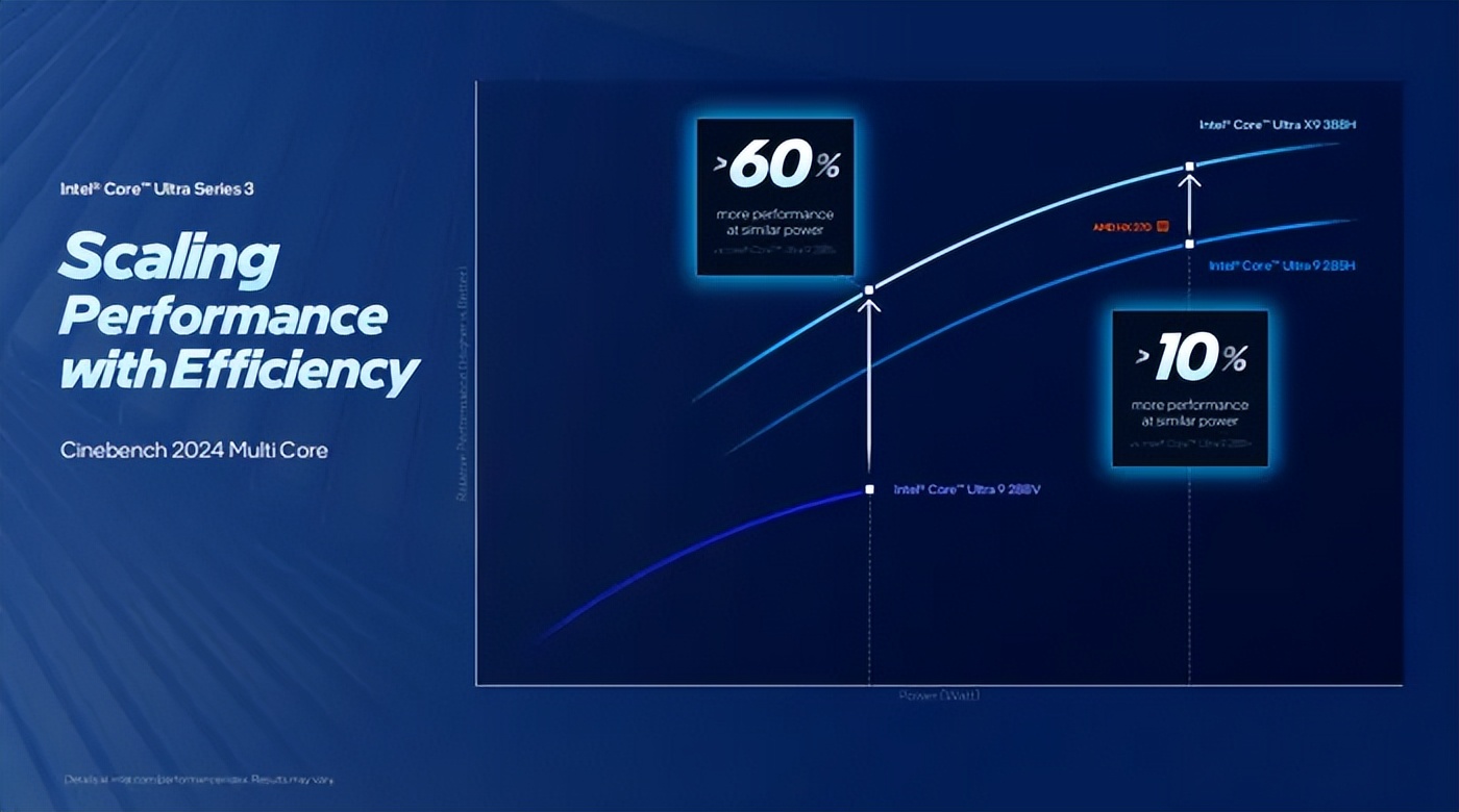 除了高能效比之外,英特尔酷睿 Ultra 9 处理器 386H的整体性能也有明显提升。在相同功耗条件下,其多线程性能相比 Lunar Lake 提升可达 60%,相较 Arrow Lake 也有约 10% 的领先表现。视频剪辑、4K 渲染等高强度、多线程任务处理起来更加从容,即便是在离电状态下,也不容易出现性能骤降的情况。对于需要频繁移动办公的用户来说,这意味着在保持相对安静、低功耗运行的同时,依然能够把工作持续推进下去。