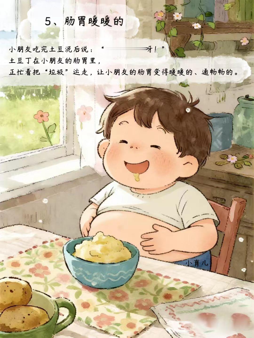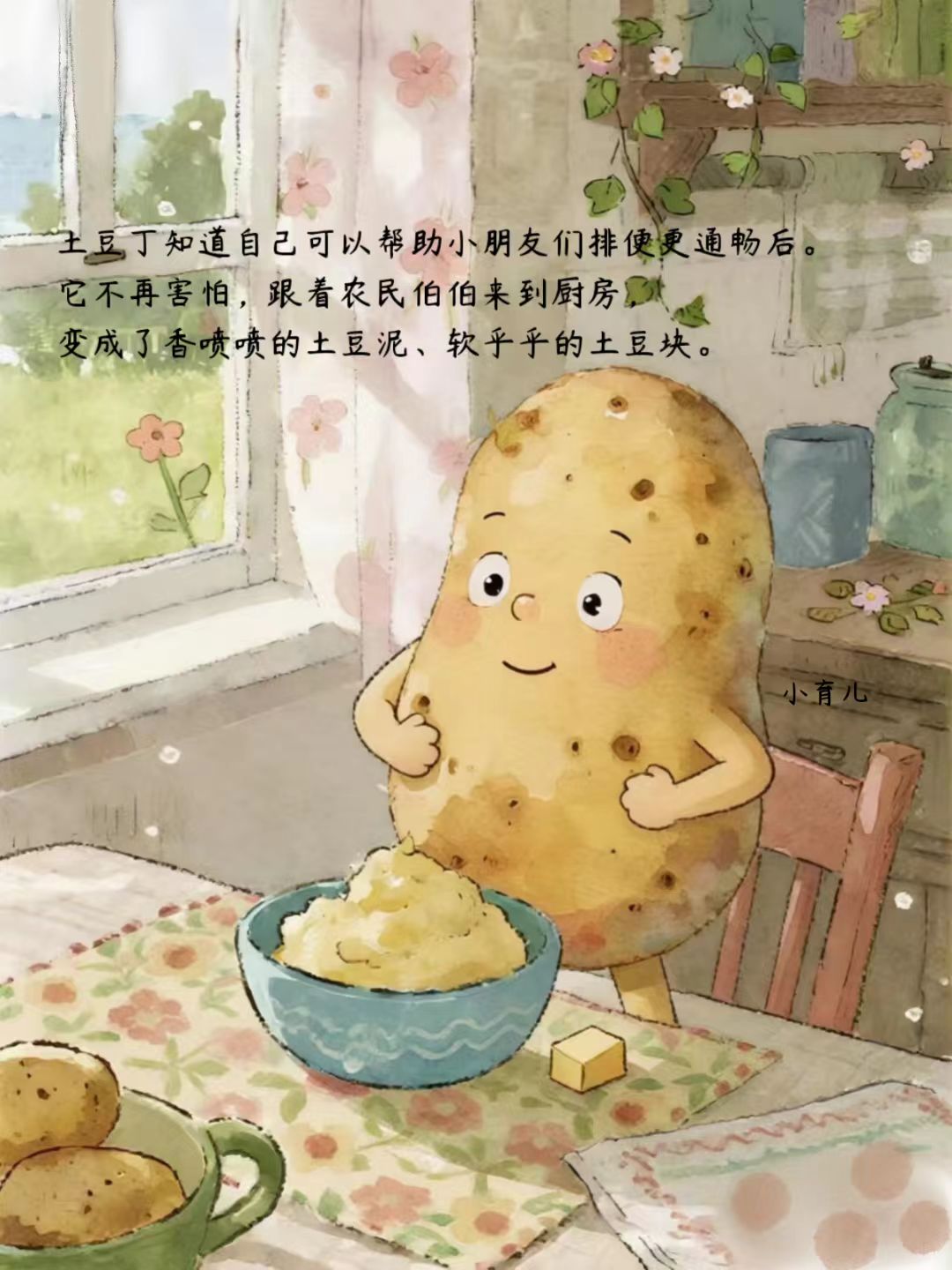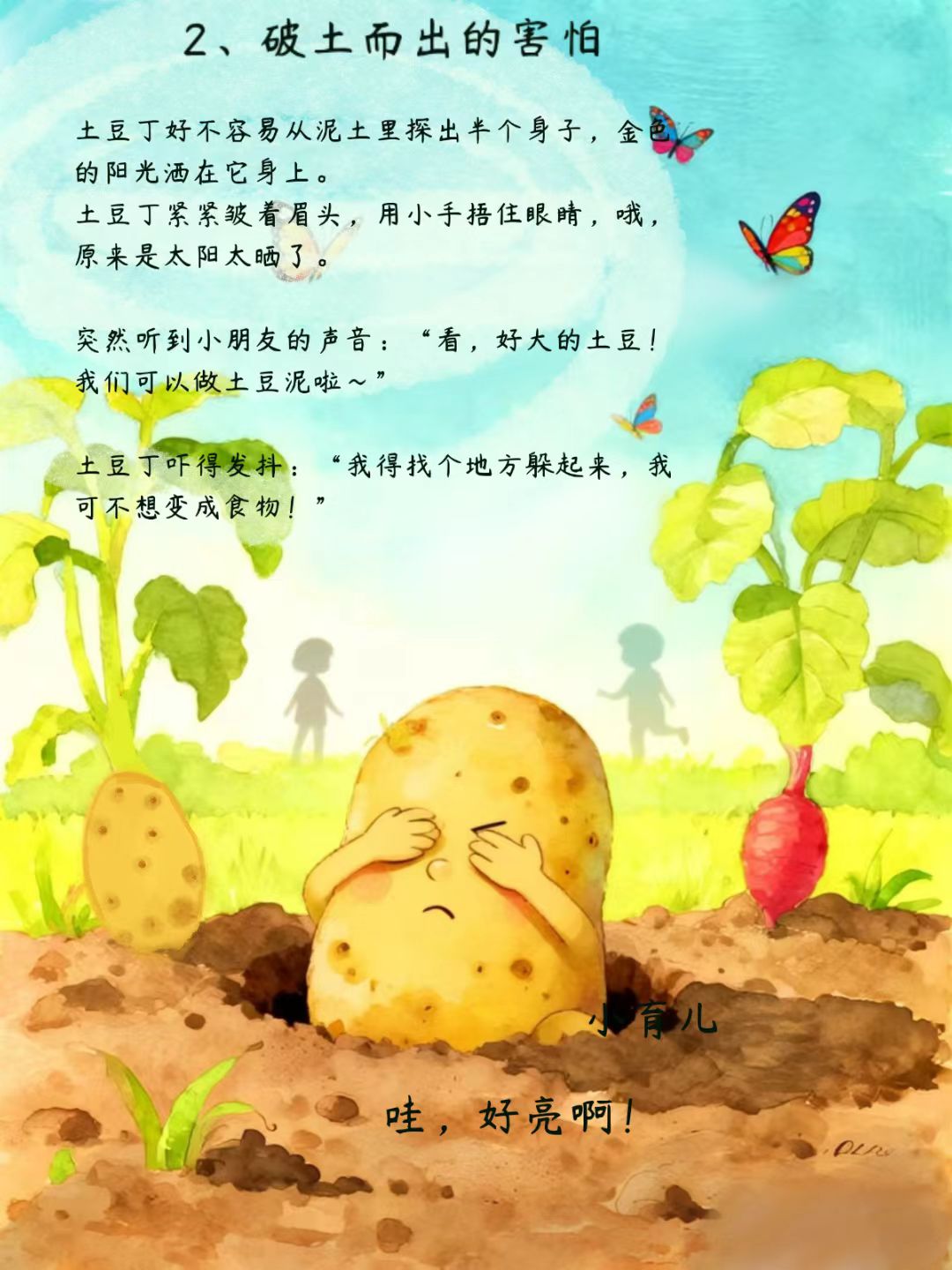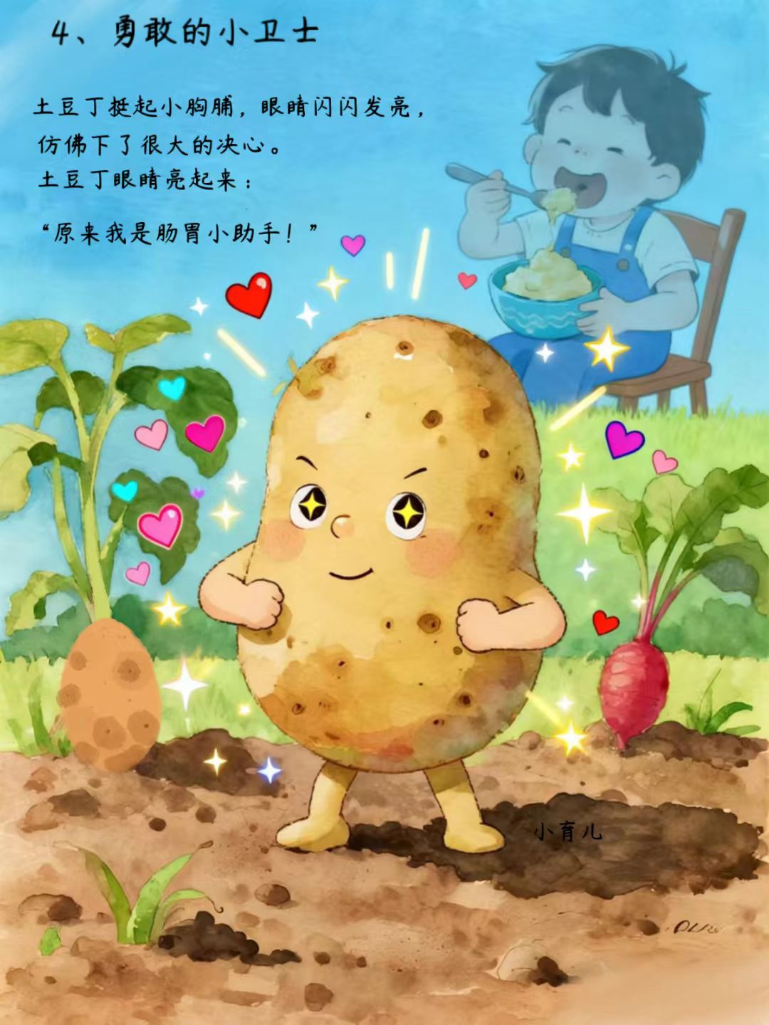 土豆丁完成自己的使命,挥手和大家告别:以后要好好吃饭哦!一个勇敢、温暖、充满想象力的故事
