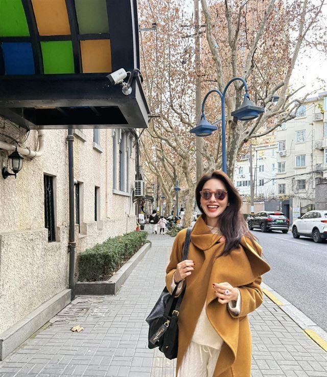 杨采钰这组照片印证了这个观点——翻毛领大衣与石库门墙砖的肌理呼应,羊皮短靴踏在梧桐落叶上的韵律,都在诉说人与城市的共生关系。