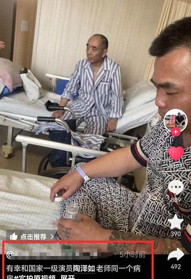 4月10号,有博主在网上分享视频感叹:有幸和国家一级演员陶泽如老师同一个病房。