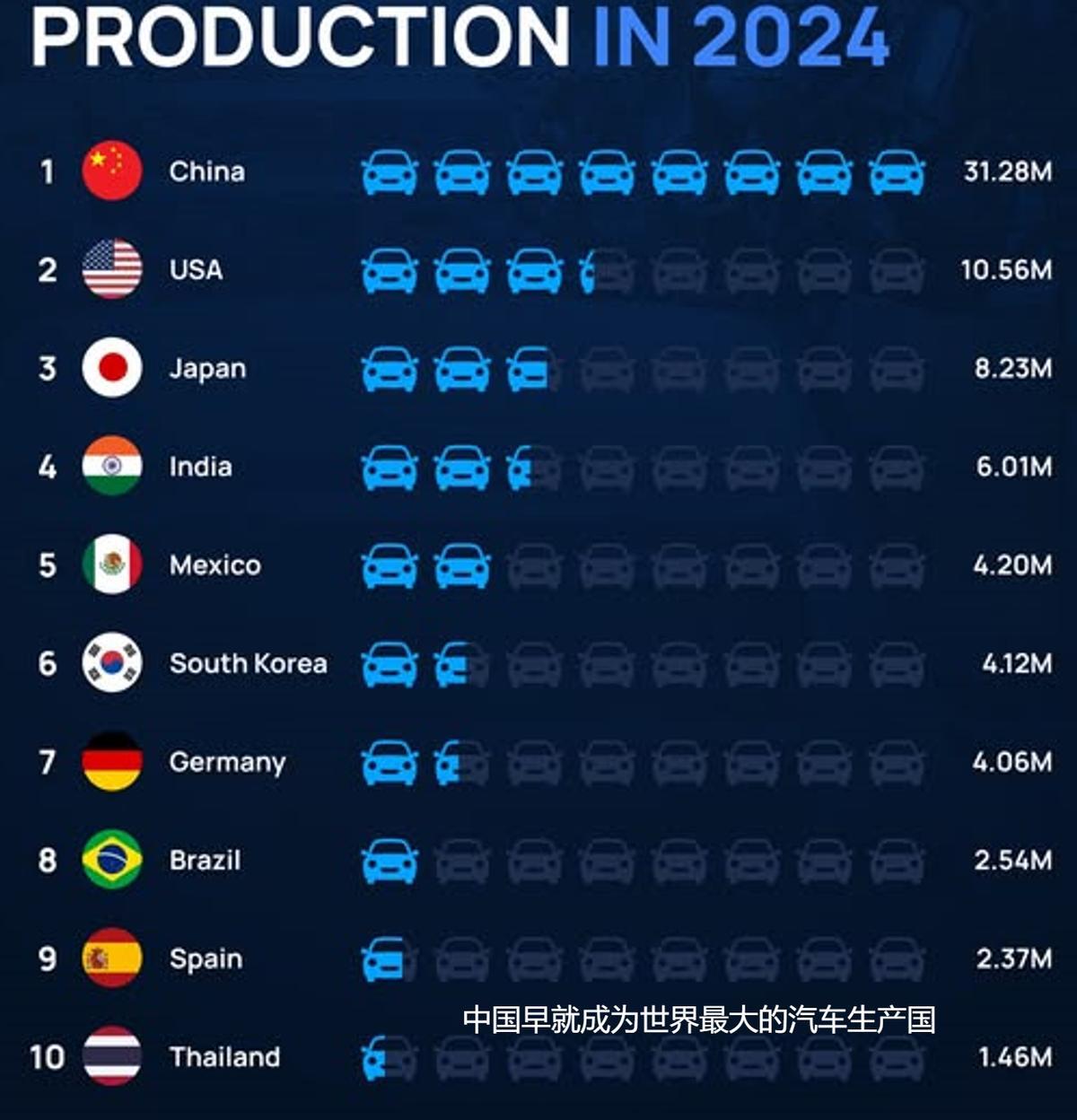 在传统燃油车时代,日本汽车工业几乎不可撼动。但新能源汽车的浪潮改变了游戏规则。2024年中国生产乘用车3128万辆,远超日本的823万辆。比亚迪已超越本田和日产,成为全球新能源车领域的领头羊。中国品牌的崛起速度让全球震惊,并惊讶的发现了一个事实——汽车产业的未来重心正在转移。